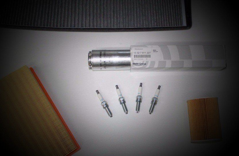 Öl, Ölfilter, Luftfilter, Zündkerzen, Innenraumfilter und Bremsflüssigkeit