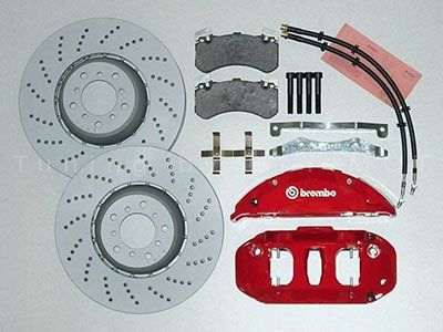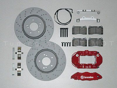 Enthalten sind alle erforderlichen Teile inklusive der 6-Kolben Festsättel, Adapter, Beläge, Bolzen, Schrauben und aller Kleinteile sowie unsere leistungsfähigen mehrteiligen gelochten Sportbremsscheiben in 345x28 mm und Stahlflex-Bremsleitungen. Es sind ab 18 Zoll Räder fahrbar. Der Gesamtpreis ist inclusive Einzelabnahme.